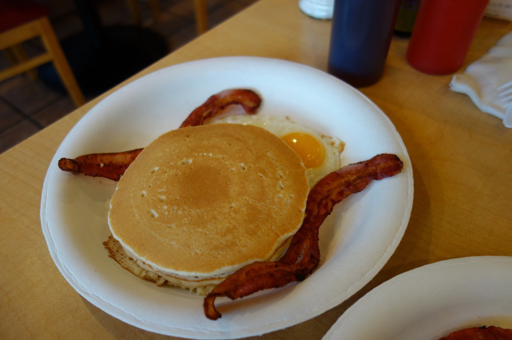 トリオ $8.75かなりの量でした。結構食べる方の私でもキツくて、パンケーキ1枚をテイクアウトしました。