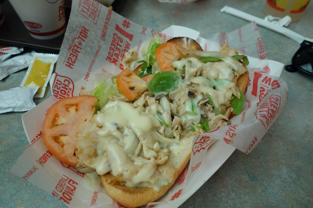 フィリーチーズステーキ 大きさを忘れてしまいました... Smallではなかったような...注文をミスってチキンになってしまいましたが、おいしかったです!